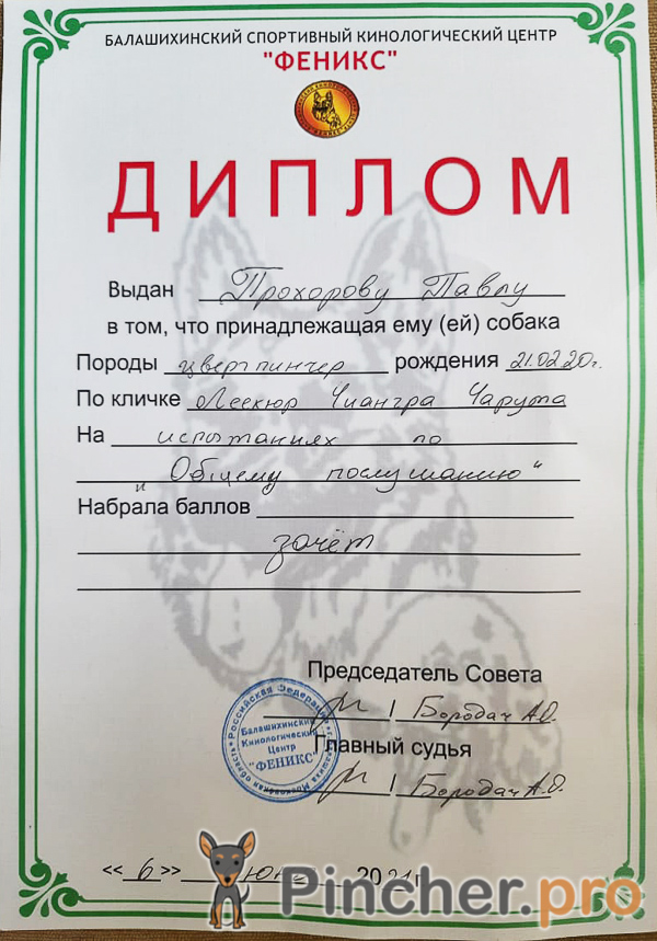 Результатом таких занятий для малышки Пули (Леекюр Чиангра Чарута) стала успешная сдача зачета по общему послушанию на впервые проведенных соревнованиях «военизированная полоса препятствий», организованных Балашихинским кинологическим центром «Феникс».